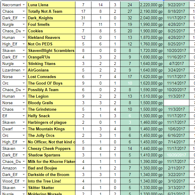 My internship project was assisting with the World Building class at Full Sail University, which included assisting with the management of the Student League of Blood Bowl which is part of the class requirement for the students during their time on campus. It is used to track a large amount of data with fine detail, categorize it, and make it easier to understand the very complex systems and balance that went into Living Rulebook 5, which is the set we use for our games.