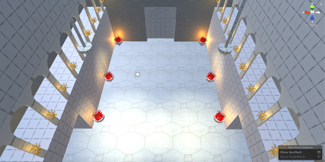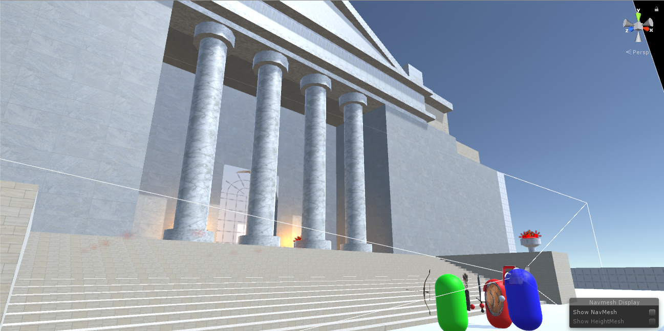 I personally touched quite a few parts of the design and documentation, but I would say that my biggest piece of work was in systems and level design. I spent a lot of time making the various interactions in the game talk to one another, the enemies, and the players as needed. Some examples of this were a series of disappearing walls and traps that would appear or disappear based on distance from the player or other interactions. You could make them appear through other means such as shooting an arrow at them to make it visible for a short time. As well, I tested some other mechanics like a chasing boulder system that would follow the player through an area with a rubber-banded feature so that you could not outrun it too much. It would speed up the farther away you were from it.