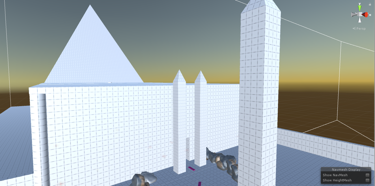 Our Egyptian level was my primary level design focus. With a (nearly) blinding sandstorm in the intro, to maneuvering lights and mirrors to complete puzzles, as well as a small maze involving those disappearing walls, the major theme of my level was light and visibility. I enjoyed work on it immensely, even if I wasn't quite able to get all of the features and ideas I wanted implemented in the time I had available to me.